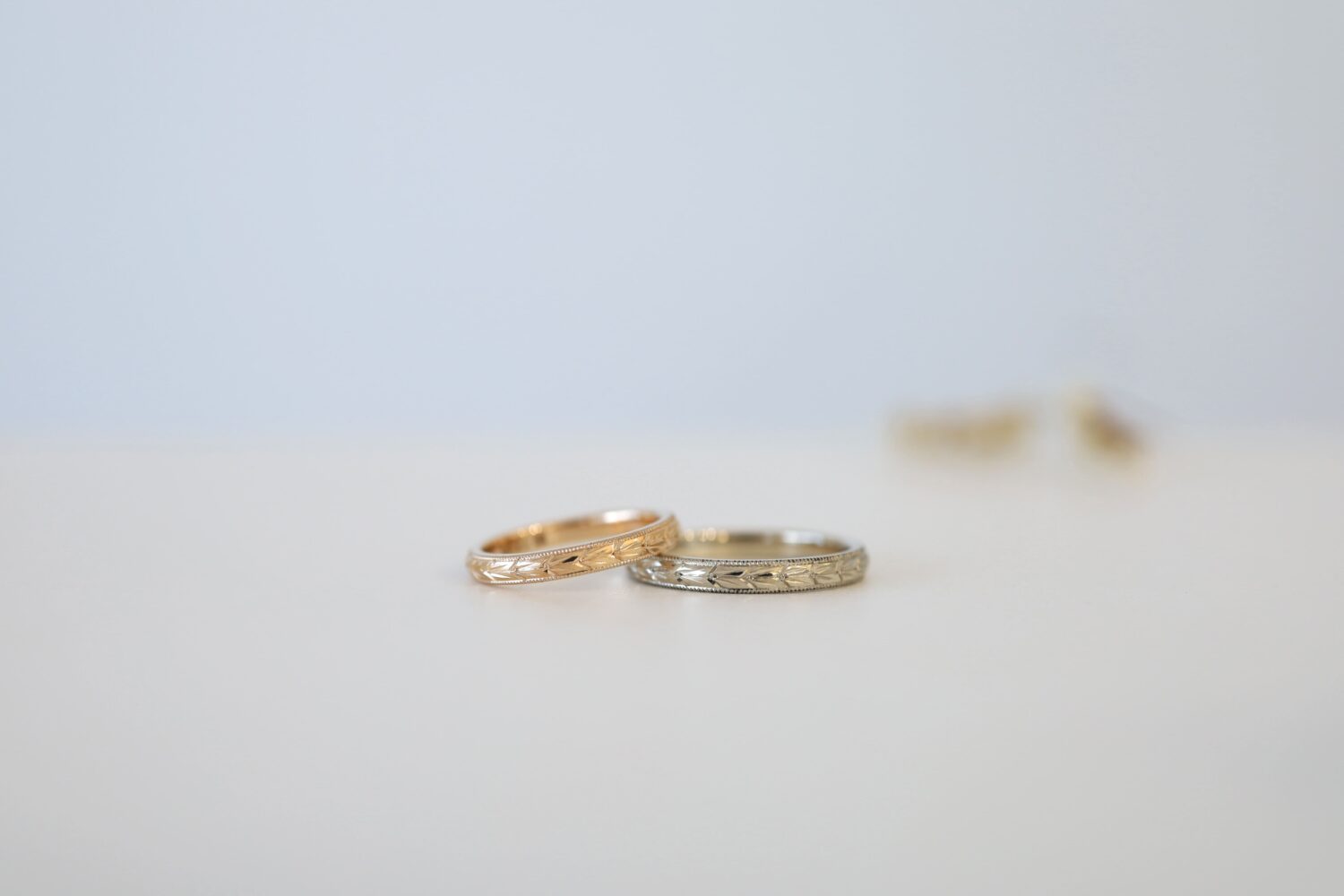 月桂樹の彫り模様を施したマリッジリング