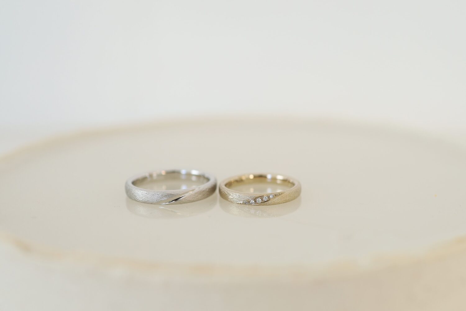 丸いリングとフラットなリングの中間くらいの形「ソフトラウンド」です。