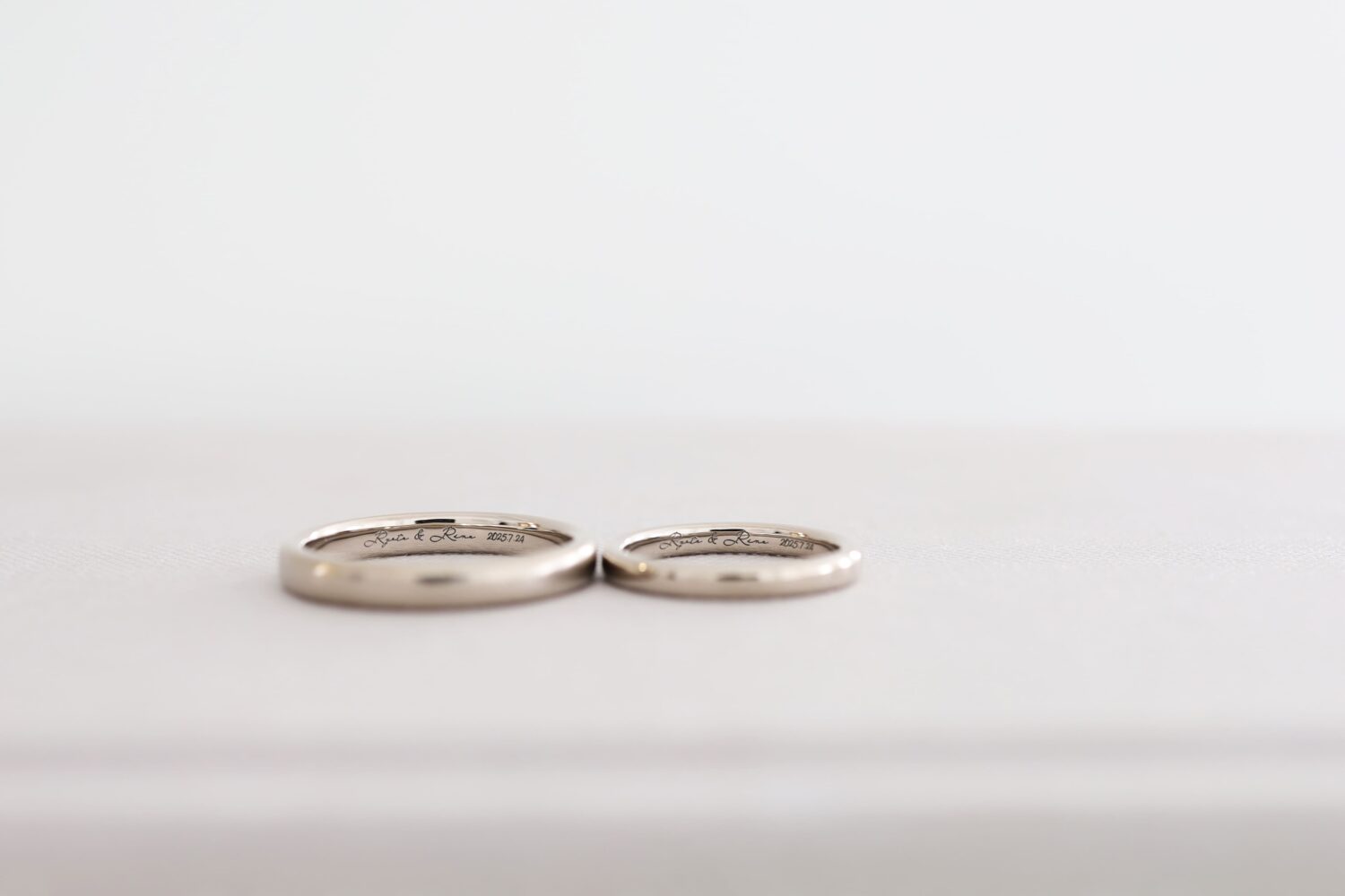 ご新婦様のリングは「鏡面仕上げ」で上品に仕上げました。