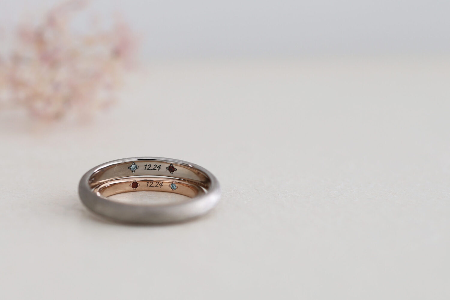アイスブルーダイヤ & ガーネット 十字留めの事例