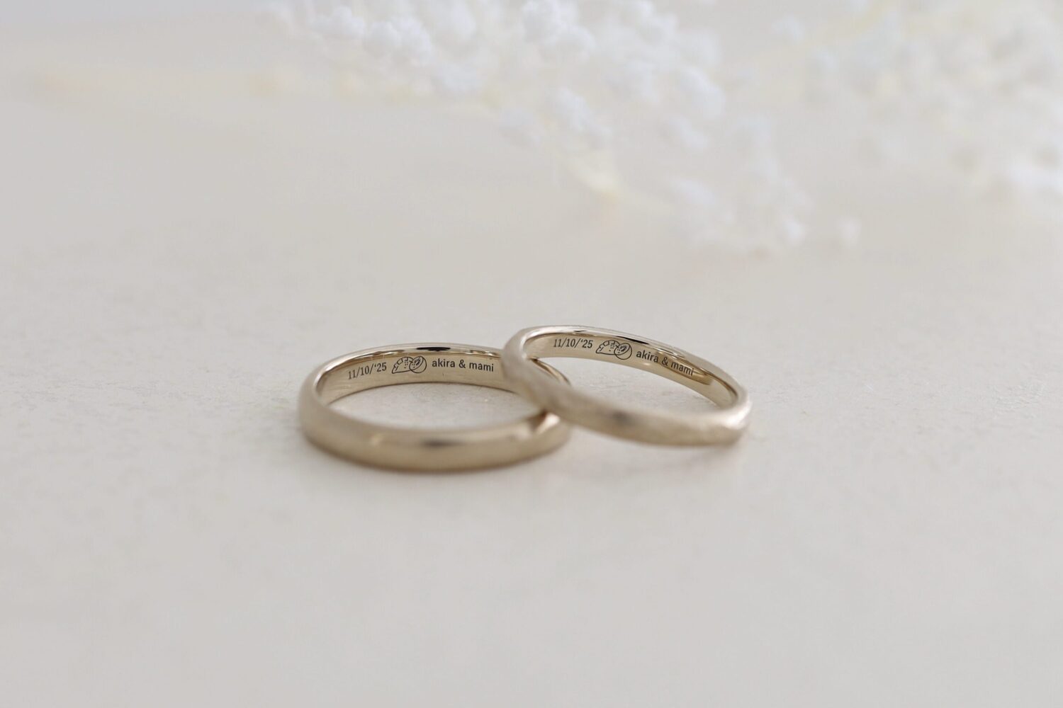 内側のレーザー刻印は、お二人の手書きのイラストとフォントの組み合わせに。