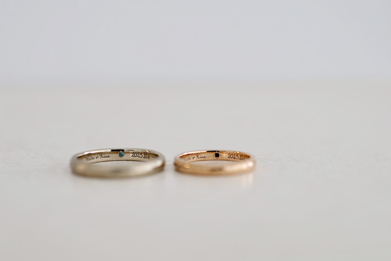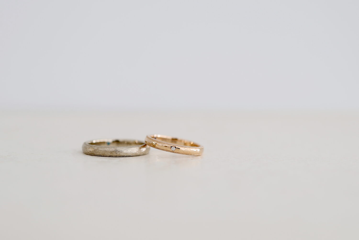 手打ちのミルグレインで縁取ったマリッジリングです。