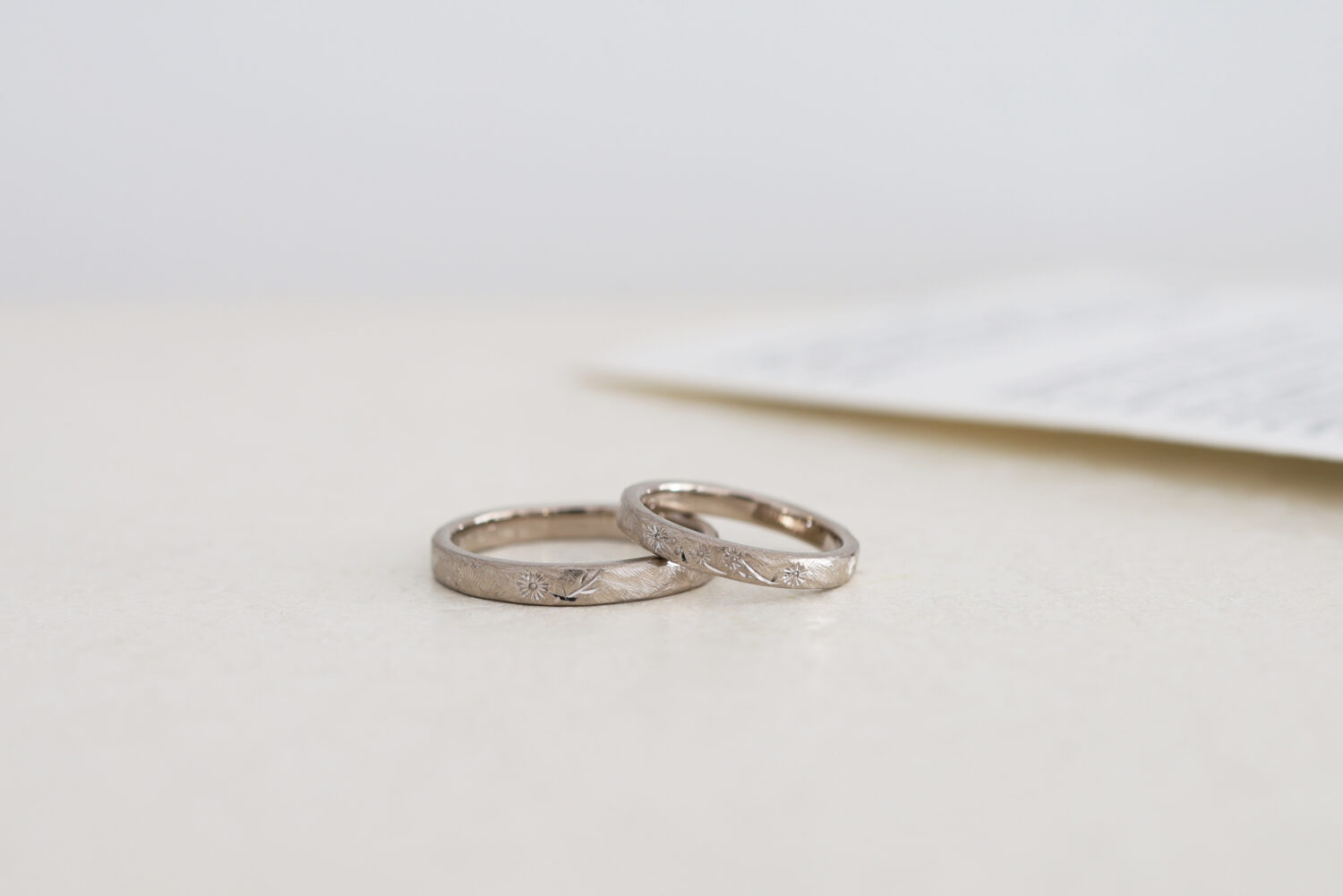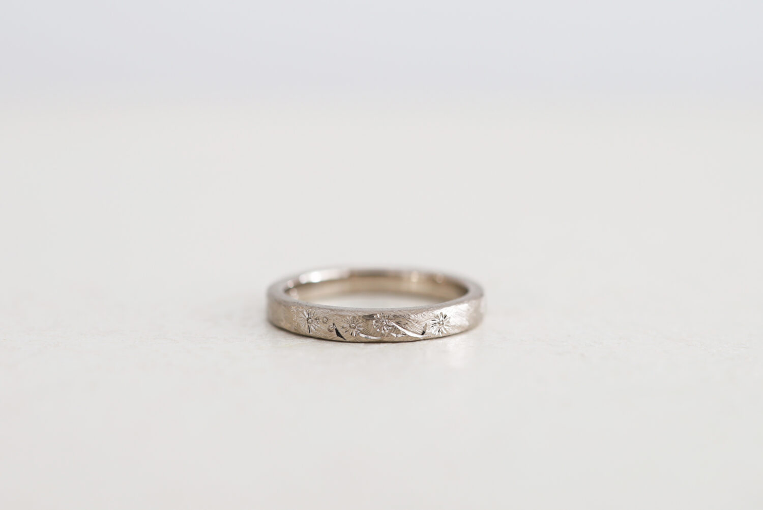 マーガレットをイメージした彫り模様のマリッジリングです。