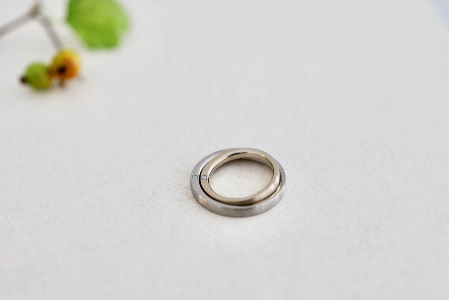 マリッジリングの横から見えるダイヤモンドがポイントのデザイン