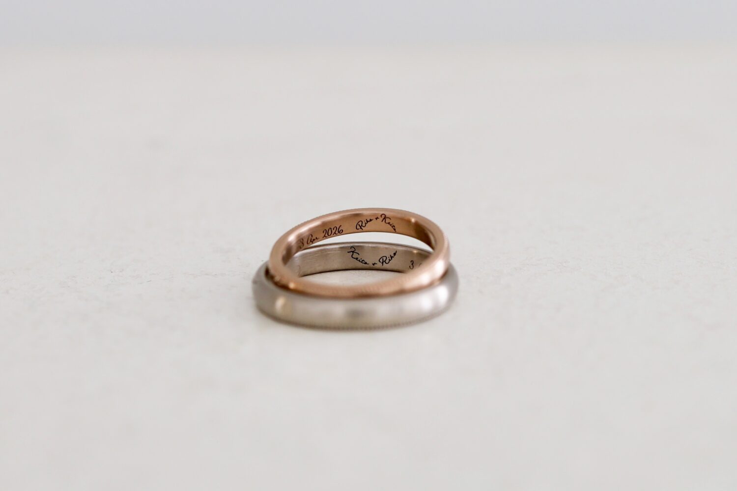 二人のリングを包み込むように入れた、片側ラインのミルグレインも素敵ですね。