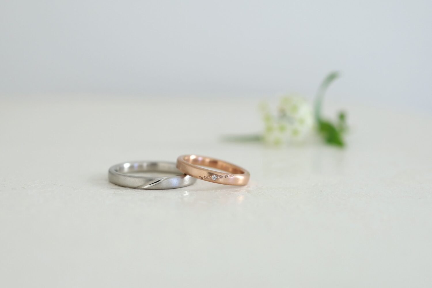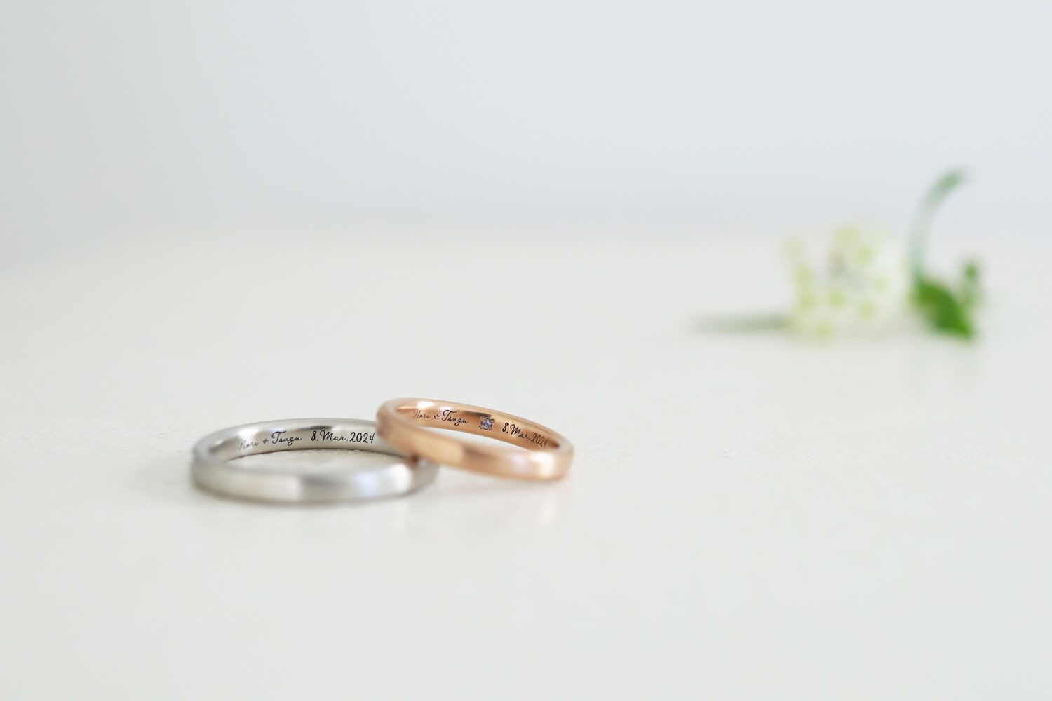 お二人とも斜めに入った彫り模様がワンポイントです。